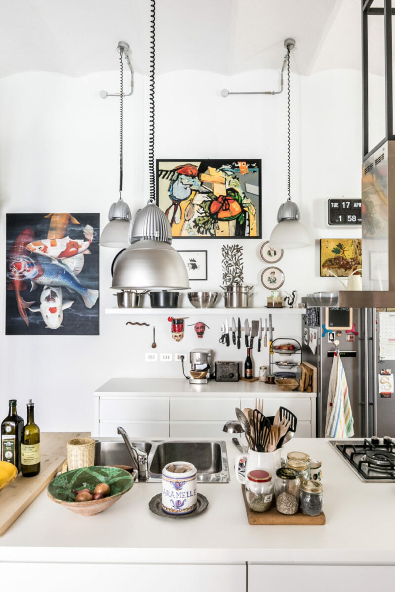 La bonne idée : les lampes « accordéons » au-dessus du plan de travail.