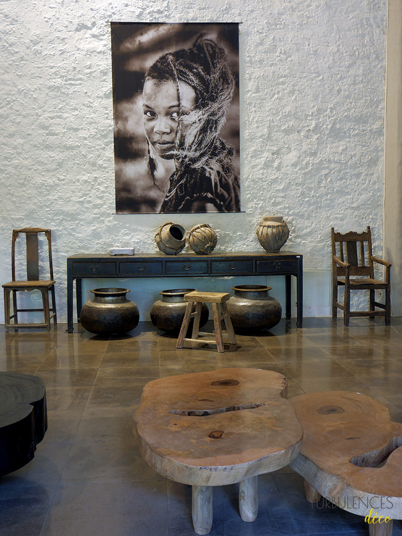 Le domaine de Quincampoix est une adresse un peu secrète, bien connue des antiquaires, des revendeurs comme la boutique belge Couleur Locale ou des architectes d’intérieur, mais il n’est pas fermé au grand public, simplement il faut prendre rendez-vous. A chaque arrivée de containers, l’équipe de Thierry Grudman organise des expositions en invitant des créateurs. C’est donc dans le cadre des 20 ans de la création d’Atmosphère d’ailleurs que j’ai eu la chance d’être conviée pour tourner une vidéo.