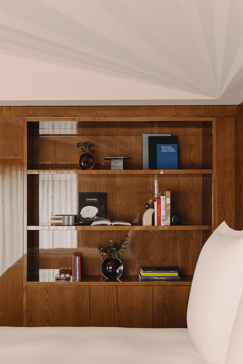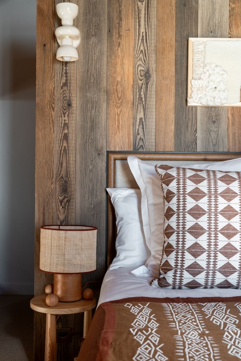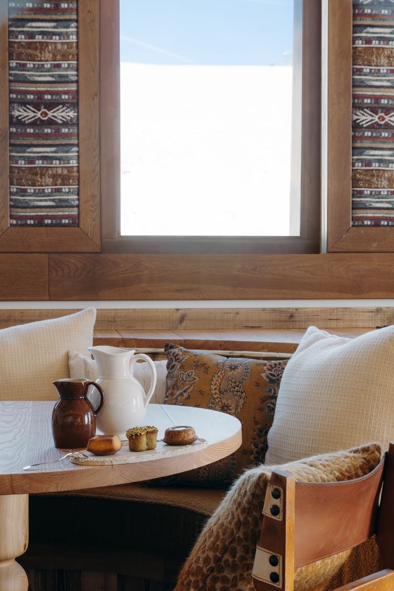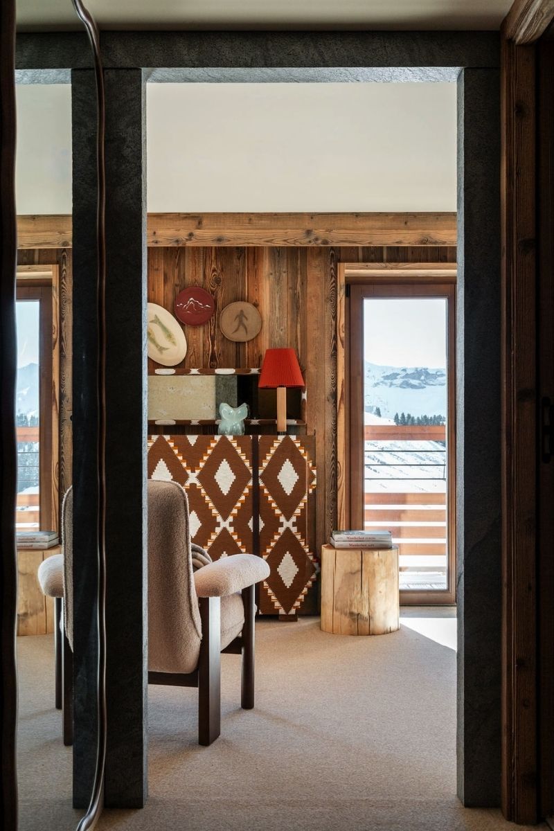 L’établissement compte 51 chambres et suites, dont trois appartements signature, chacun s’ouvrant sur l’immensité enneigée du domaine des Trois Vallées. Un des appartements est signé par le studio Ko, je l’aime beaucoup pour son esprit soixante-dix chic.