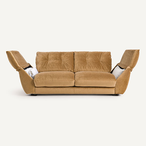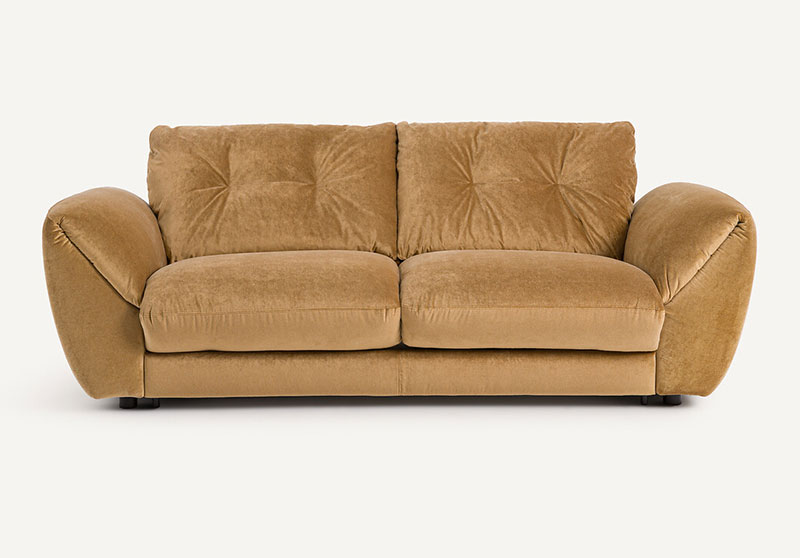 J’aime beaucoup le look seventies de ce canapé en velours, avec ses proportions basses et ses coussins généreux. La banquette 3 places, d’ailleurs fonctionnera bien toute seule. Et il existe en vert amande pour les amateurs d’ambiances douces et caractérisées ! Je l’imagine avec des coussins à fleurs comme ceux de HK Living.