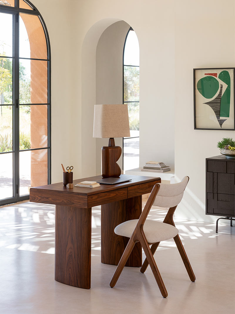 Cette année, la marque ne s’aventure pas trop dans la fantaisie. La collection se révèle plutôt d’un design classique « milieu de siècle » qui est donc dans la continuité de l’exploration d’un luxe tranquille : belles lignes, couleurs terreuses et taiseuses, matières naturelles.