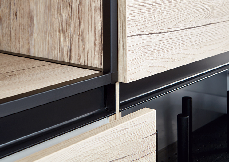 Parce que les poignées sont souvent lourdes visuellement, la solution est d’opter pour des portes de placard où elles sont discrètement intégrées. Les cuisinistes ont multiplié les solutions : encoches invisibles, trous ronds, carrés, poussoirs…