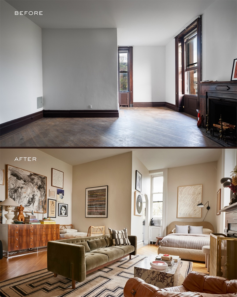 L’appartement Avant – Après de Jason Saft @stagedtosellhome à Brooklyn, où l’on voit le pouvoir de la couleur pour le propulser vers les hauteurs.