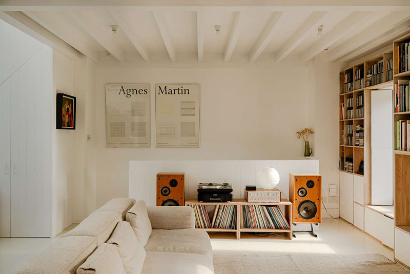 Cet ancien bâtiment religieux a été rénové dans une vision conceptuelle du minimalisme : blanc omniprésent, peu de rangement, espace ouvert. C’est beau, mais je pense qu’il vaut mieux oublier si on a une vie de famille turbulente, ou une vie tout court.