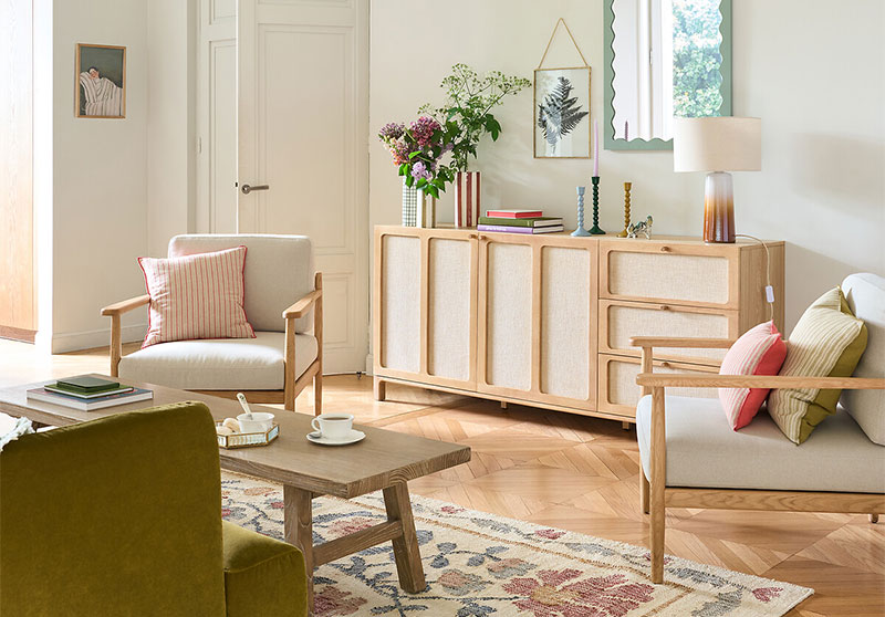 La salle à manger, c’est la pièce où l’on se retrouve, où l’on reçoit, parfois longtemps, parfois à l’improviste. Elle doit être fonctionnelle, conviviale sans jamais perdre en allure. Je vous ai donc repéré des tables et des chaises soldées à mixer, des vaisseliers et des meubles de rangement pour structurer l’espace, ainsi que de jolies suspensions pour créer une vraie atmosphère.