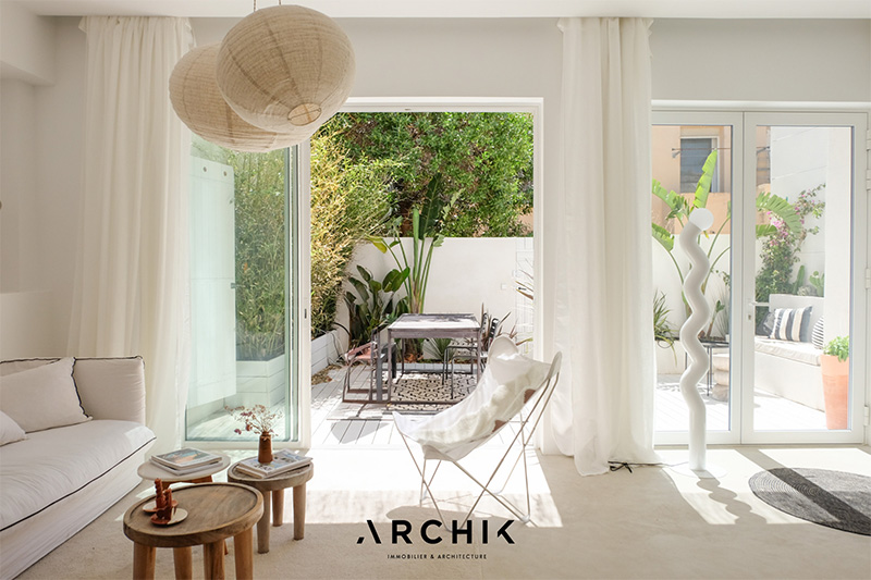 J’ai trouvé mon nouveau site immobilier préféré, et il est français : Archik. Il propose des biens immobiliers contemporains, avec de belles photographies qui mettent en valeur des intérieurs design. Leur implantation est actuellement située plutôt au sud de la France. Cependant, il gagne du terrain. Parce que la déco sud est de saison, je veux dire qu’elle correspond à notre humeur estivale, j‘ai déniché pour vous ce bel appartement de 70 m2, situé dans le 7e arrondissement de Marseille. La question sera pour cet article : Peut-on vivre toute l’année dans une ambiance « vacances » estivale ? Réponse à la fin.